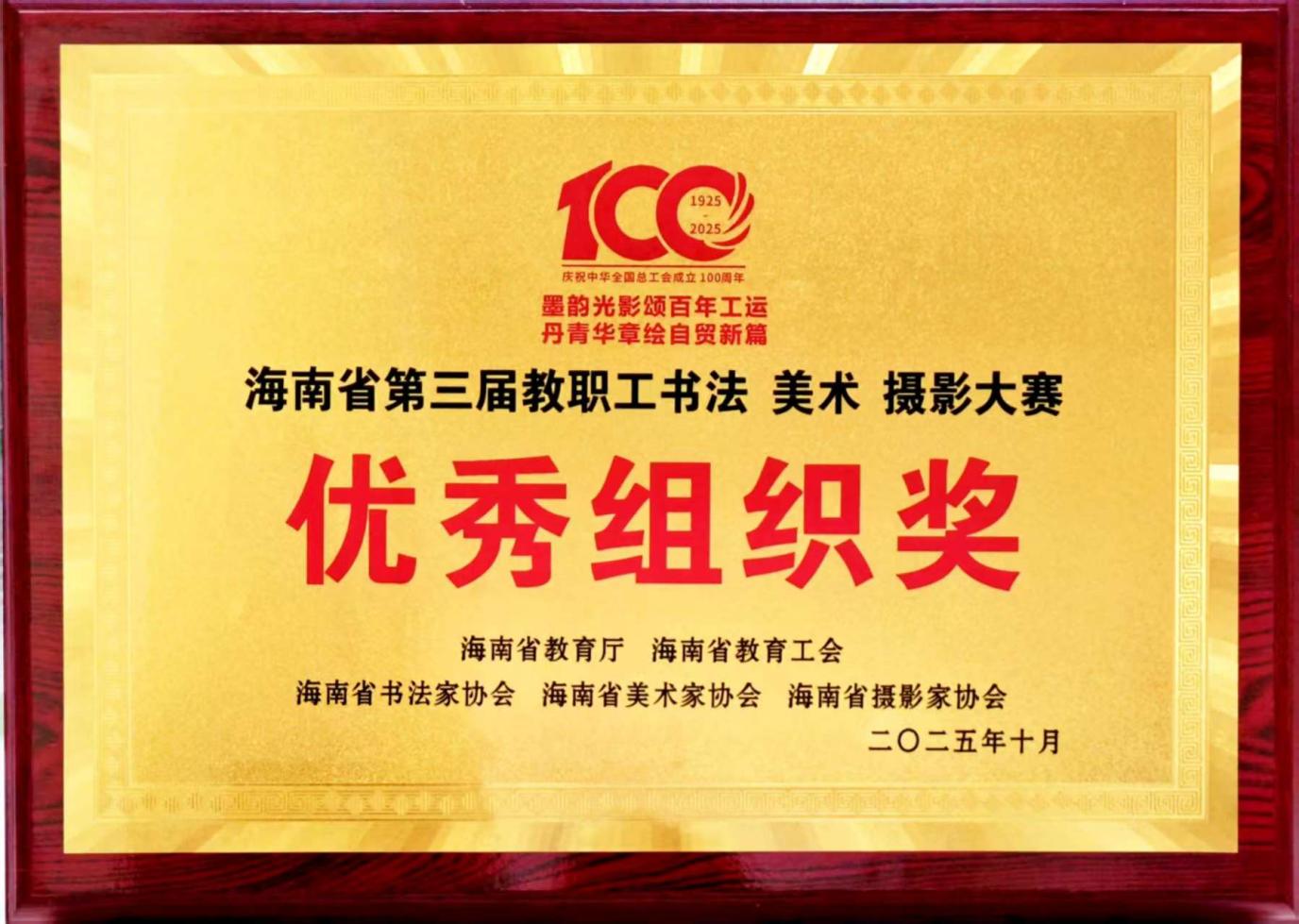 近日,海南省第三届教职工书法美术摄影大赛获奖作品展暨颁奖典礼在海南省文化馆隆重举行。三亚学院教职工捧回3个一等奖、2个二等奖、1个三等奖及7个入选奖,同时获评“优秀组织奖”,以丰硕的艺术成果展现全校教职工深厚的文化素养与学校文化育人工作的扎实成效。