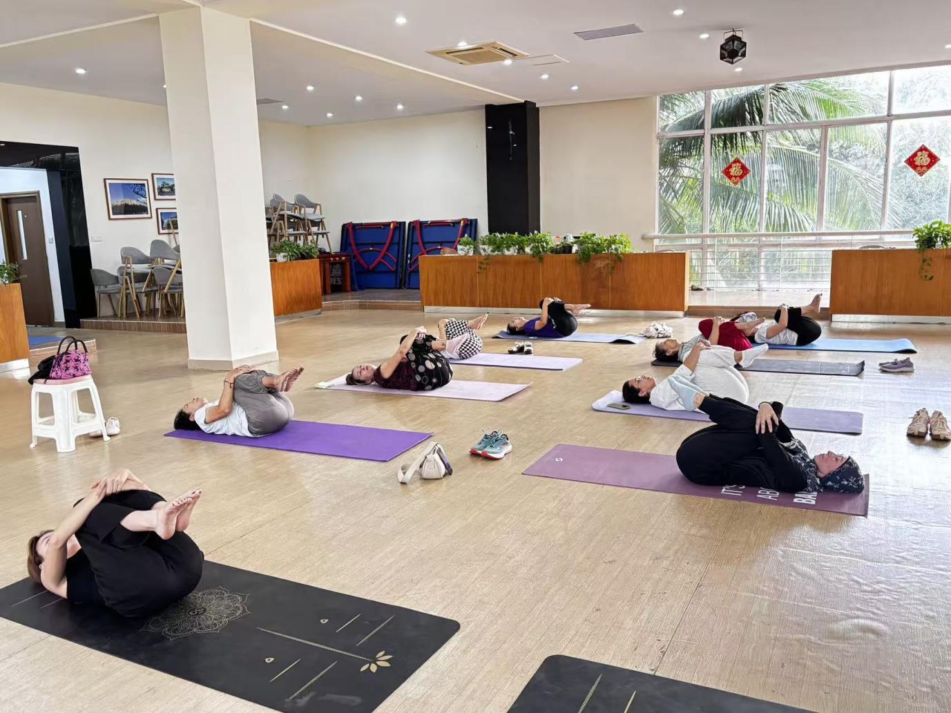 每周三的固定时段,瑜伽健身活动室早已布置妥当:整齐排列的瑜伽垫、柔和的室内光线、适宜的室温,俱乐部志愿者们提前做好各项准备,为参与教师营造出舒适放松的练习环境。