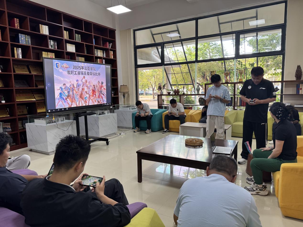 校工会始终聚焦教职工精神文化需求,为赛事提供了全方位的优质支持。从统筹协调各类资源到精心筹备表彰奖品,校工会全程保驾护航,为赛事顺利开展筑牢保障。赛场上,各教职工参赛队伍默契配合、奋勇争先,精准的战术部署与精彩的操作对决轮番上演,现场氛围热烈融洽;赛场下,跨部门教职工因赛事结缘,在交流互动中增进了情谊、凝聚了共识,既有效释放了工作压力,更生动展现了三亚学院教职工昂扬向上的精神风貌。