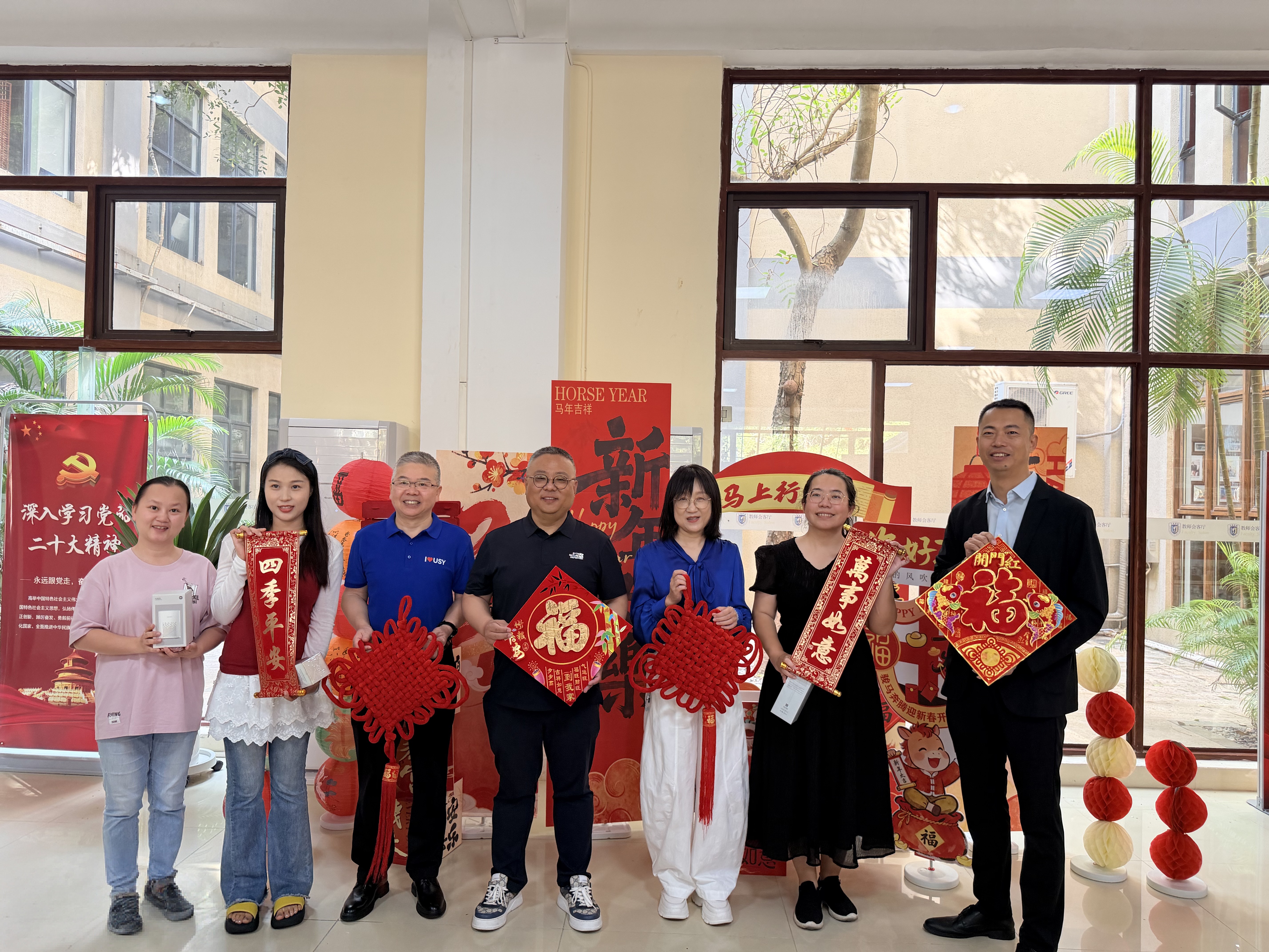 慰问活动结束后,校领导一行前往书海馆教师会客厅,为校工会团拜活动抽奖环节的获奖者现场颁奖,为新春佳节再添喜庆氛围。